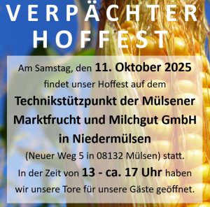Unser diesjähriges Verpächter- Hoffest findet in Mülsen statt....